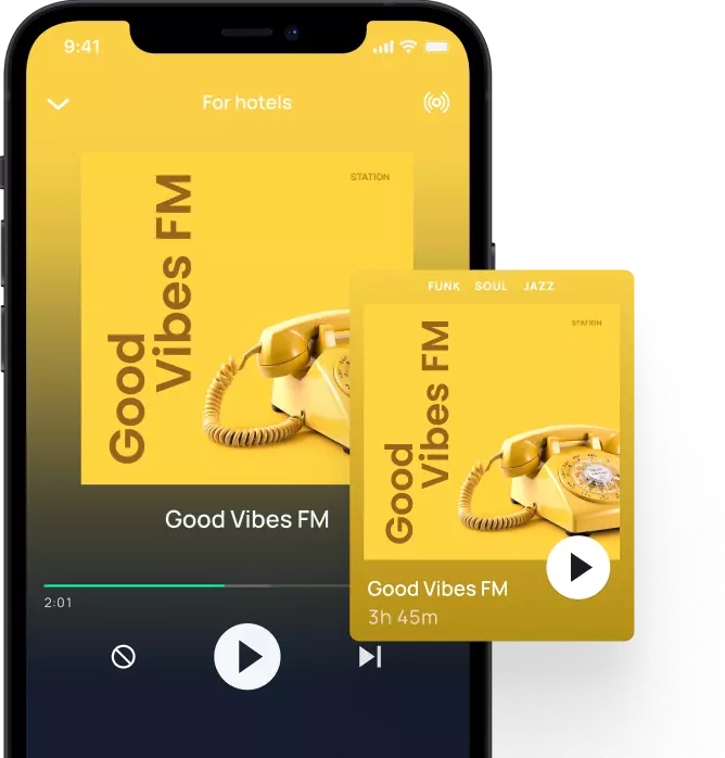 Add a reliable music supplier to your long-term partnership list and open Moodby Play music stations with the best royalty-free music of your choice! On the platform, all tracks are licensed for commercial use in public places.