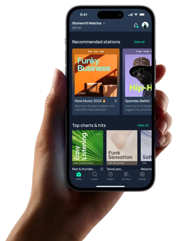 Our platform is perfect for cafes, restaurants, hotels, retail stores, salons, gyms, and any other venue needing background music.