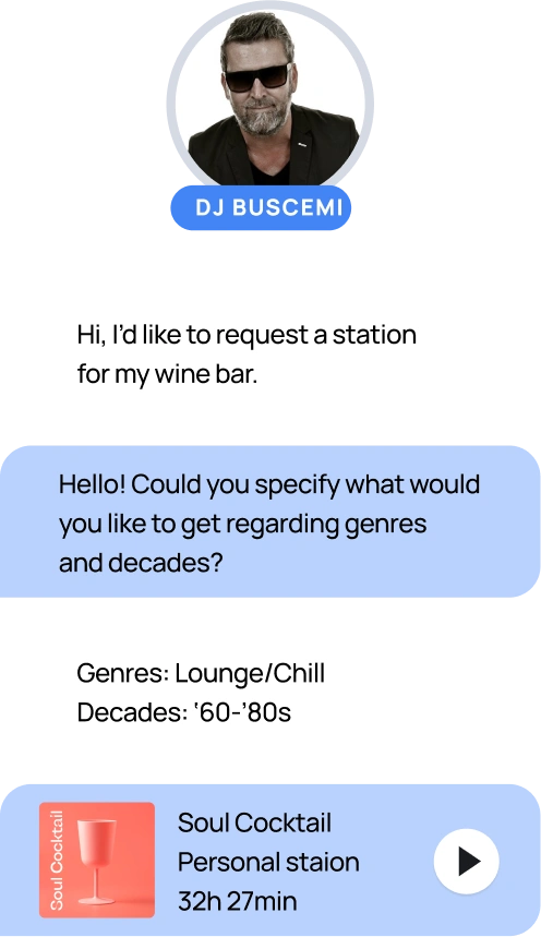 Handcrafted by experienced DJs and musicians, tailored to your business, mood, and trends. Enjoy unique tracks with no repeats and pre-made schedules for a week or month.
